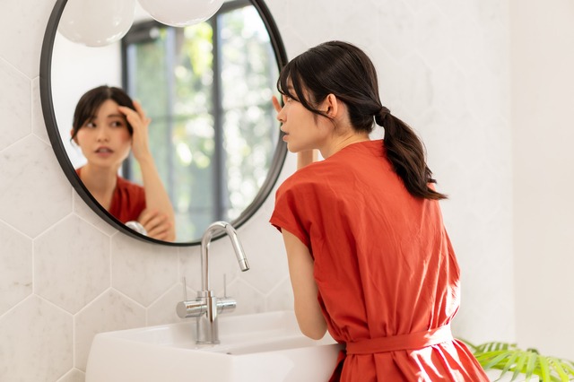 おでこは紫外線や空気の乾燥の影響を受けやすい部位です。紫外線や乾燥は、肌のバリア機能を低下させ、肌トラブルの原因になります。日焼け止めは年間を通じて使用し、帽子や日傘などで日差しをブロックしていきましょう。保湿は朝晩の洗顔後にたっぷりと行ってください。