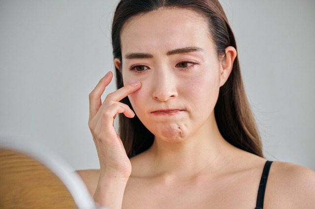 虫刺されや日焼け、ケガ、アトピーなどが原因で、肌にかぶれや炎症が起きると、メラノサイトが刺激されてメラニン色素が過剰に生成されます。肌に合わない化粧品や肌の乾燥、アレルギーなどもかぶれや炎症を悪化させ、目の周りをくすませる原因になります。