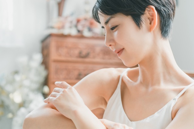 入浴後は、肌の水分が蒸発しやすい状態です。そのため、タオルドライをしたあとは、できるだけ早く化粧水や乳液などで保湿を行うことが大切。特に空気が乾燥している季節は、すぐに保湿を行うようにしましょう。