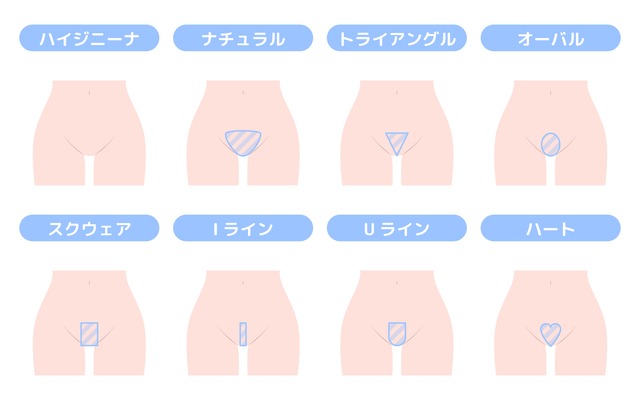 VIO脱毛の形には、主に以下の8つのデザインがあります。それぞれのデザインにメリット・注意点がありますので、デザイン選びの参考になさってください。