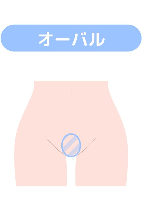 オーバルは、Vゾーンを楕円形に整えるデザインです。角のない丸い形が柔らかな女性らしい印象を高めます。楕円を小さくすれば、水着や下着からムダ毛がはみ出にくくなり、ムレや不快感も軽減できます。