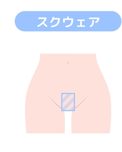 角のあるスッキリしたデザインに整えることができます。スクウェアを小さくすれば、ムダ毛がはみ出にくくなります。毛はある程度残しつつも、デリケートゾーンの形をちょっとおしゃれに仕上げたい方におすすめです。