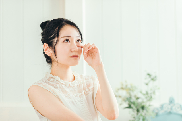 目元の皮膚は非常に薄く、乾燥や摩擦などの外的な刺激に弱い部位です。また、目の周りを擦ったり、力を入れてメイクしたりすると、皮膚の乾燥が進んで小じわやたるみが増える原因になります。乾燥や刺激によって摩擦が強まると、目の下にクマもできやすくなるため注意が必要です。