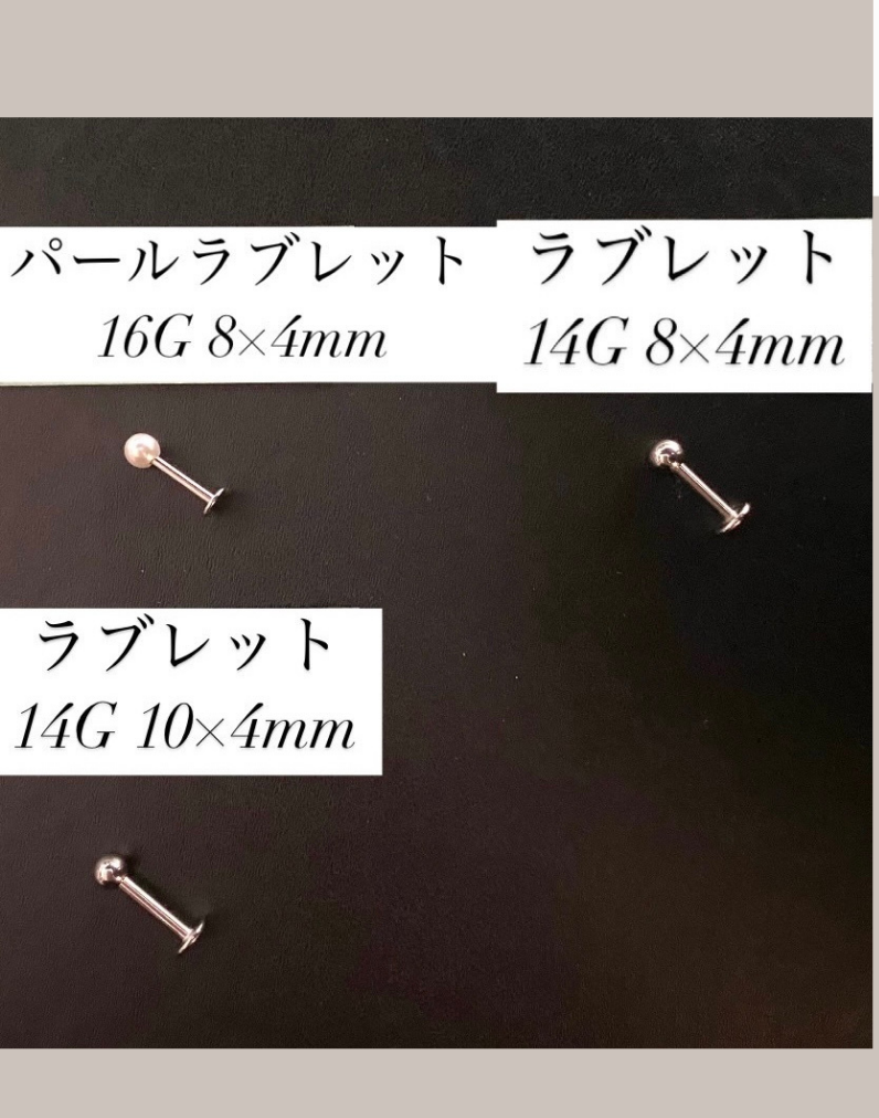 ラブレットタイプは、トラガスや 鼻 口周辺につける種類でございます。片方が、平らなディスク状になっていることが特徴です。このディスク形状のおかげもあり、キャッチがつけにくい部位でも、邪魔になりにくく装着することが可能です。